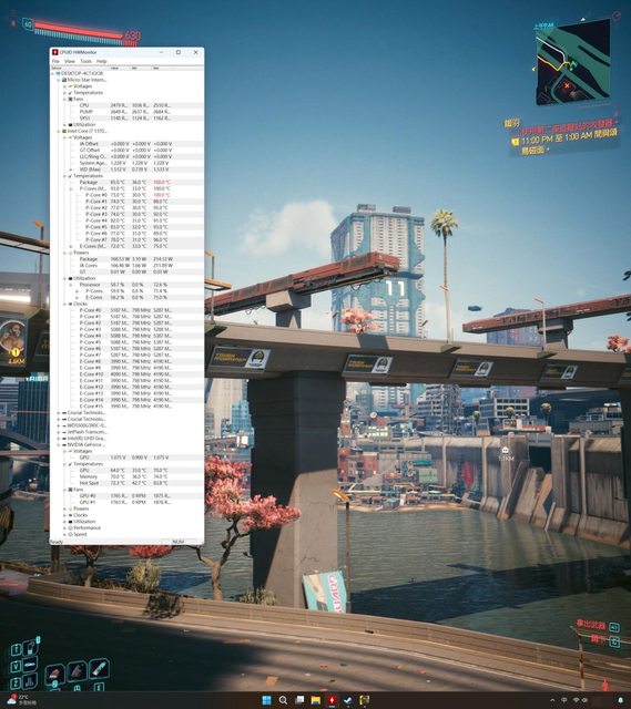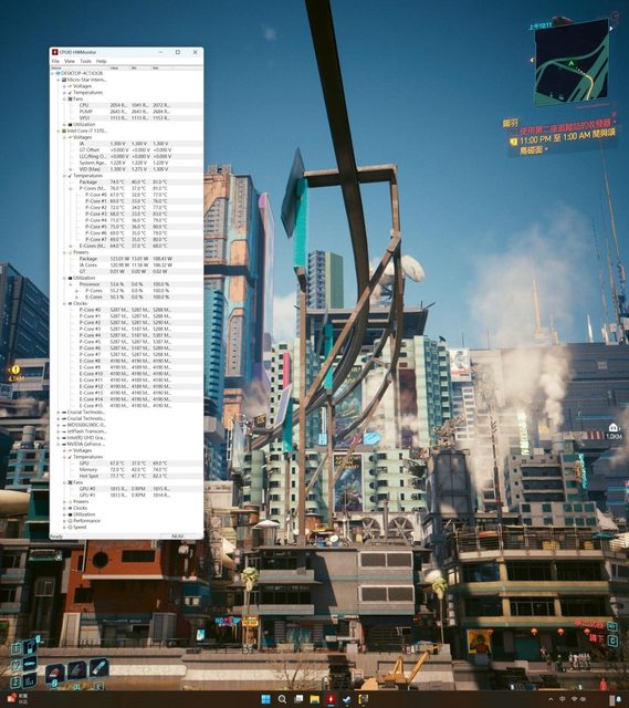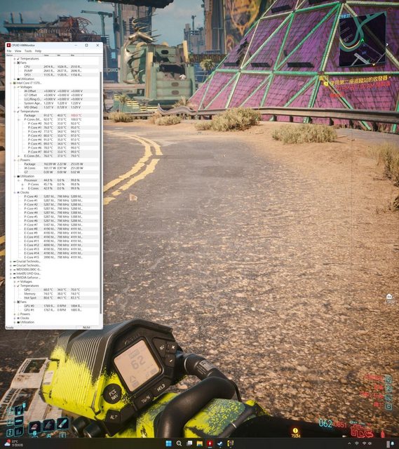 解析度、最高畫質含光追設定玩2077半小時當雙烤來測試溫度,搭配散熱膏為AC MX-6,