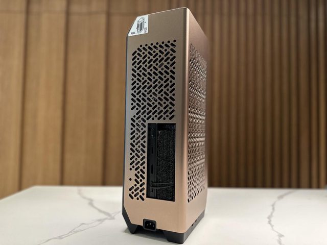 機殼外側為細緻紋路的鋁合金彎折面板,搭配大面積的通風開孔,外觀看不到任何螺絲,