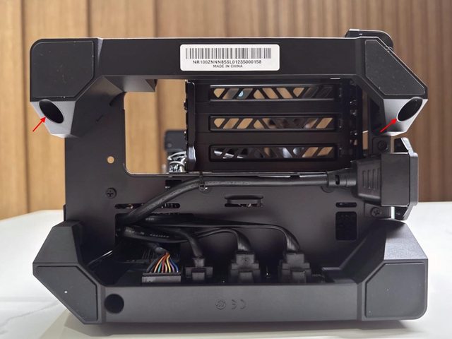 拆開兩個面板後可見類似開放式機架設計的本體,再拆除同樣是免工具的藏線板即可開始