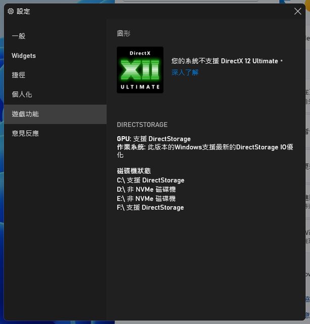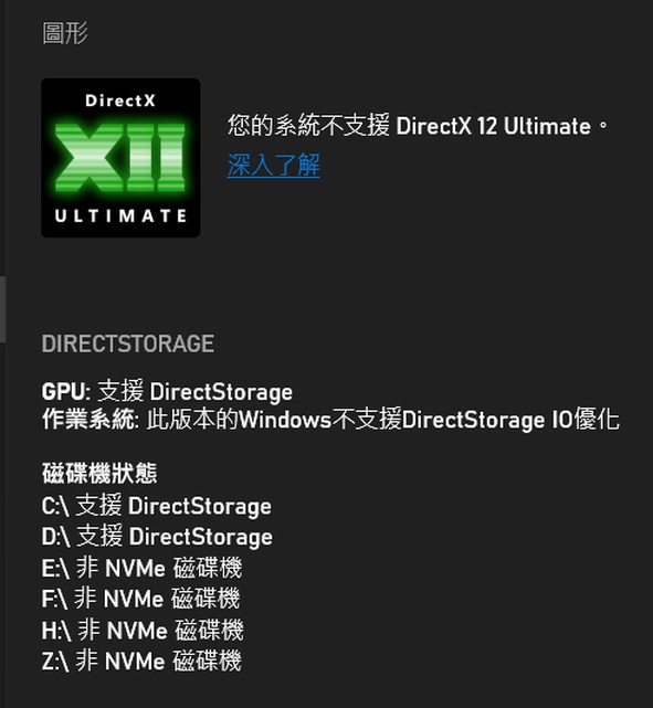 Win10會顯示不支援DS IO優化,必須用Win11