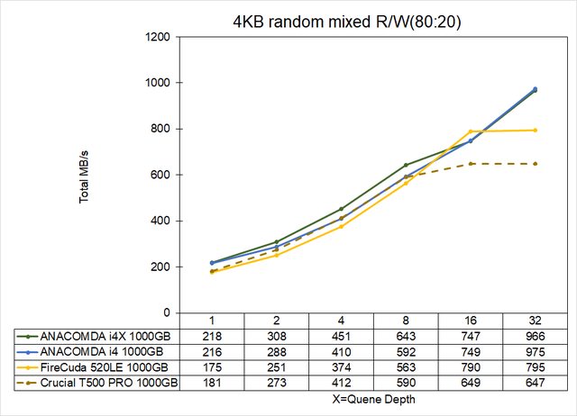 至於4K QD1隨機讀超越80MB/s的表現很OK