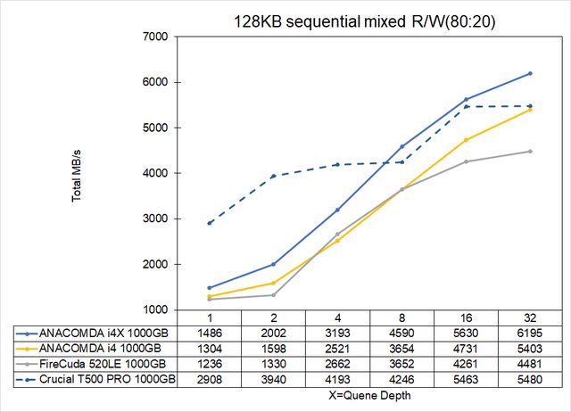 可能是僅四通道捉襟見肘才不敵i4X 1T,要到2T才能雙7000