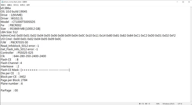 flashid尚未完整支援群聯E25,無法辨識完整數據