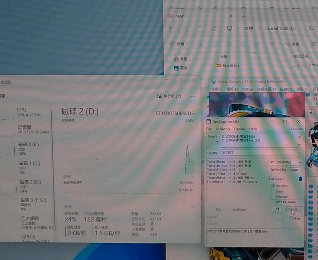 一開始1.5GB/s然後升到5.5GB/s,再降成120~880MB/s(GIF動動圖)
