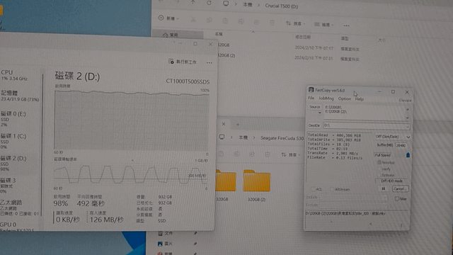 使用超過640GB過半容量,休息超過30分鐘後再倒160GB資料進去