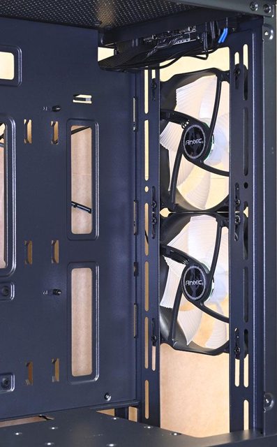 前方風扇安裝空間:3個120mm或2個140mm(預裝2個120mm ARGB從控風扇)