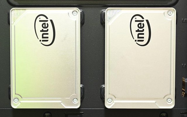 ▼底板背面右下方安裝2個2.5吋裝置示意圖。拆卸時直接抓住2.5吋裝置兩側往外拉出即