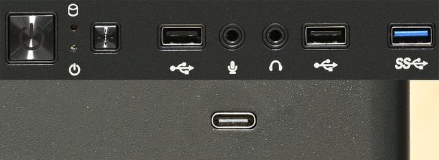 ▼前方通風網孔蓋正面右上有USB3.2 Type-C,下面有商標。USB3.2 Type-C因為直接裝在