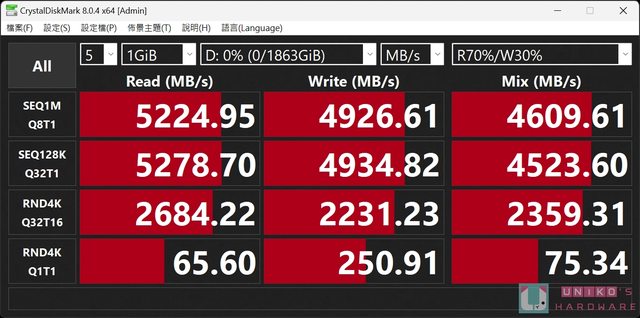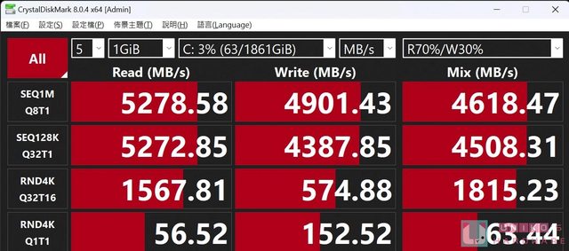 2TB,讀取從 4299.86 MB/s 提升到 5278.58 MB/s,寫入 1749.21 MB/s 提升到 4901.43