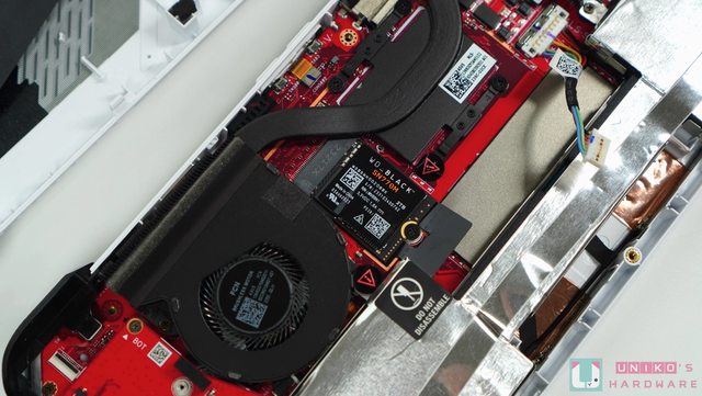 移開黑色膠片即可見到 SSD 安裝位置,卸除螺絲拔掉原本的 SSD 再安裝 SN770M,然後依