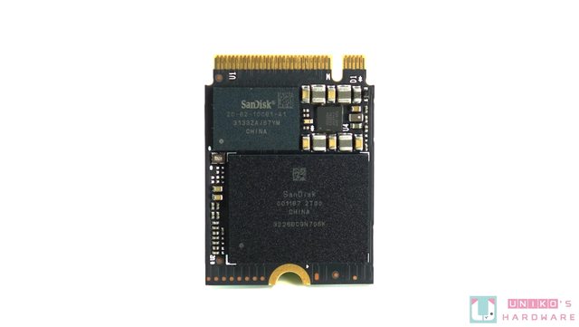 記憶體顆粒則是標示 SanDisk 001187 2T00 的 Kioxia / Toshiba 112 層 TLC,單顆 2TB