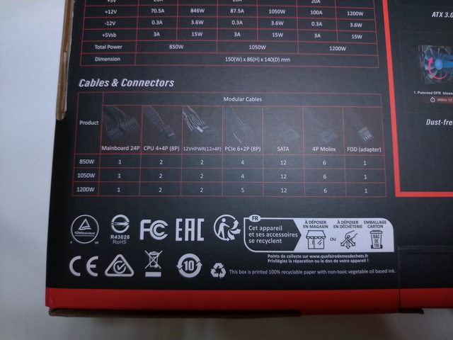 外盒也將線材數量列出,其實有差的僅1200W多一條PCIe 6+2P