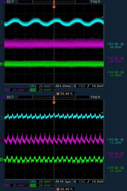 20mV/25.2mV/17.6mV,高頻漣波分別為13.2mV/23.2mV/17.2mV
