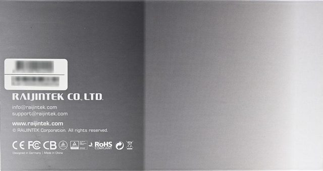 ▼本體兩側外殼其中一面的貼紙印上商標及系列名稱,另一面的貼紙有RAIJINTEK商標、