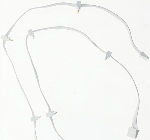 ▼2條處理器電源白色帶狀模組化線路,提供2個EPS 4+4P接頭,18AWG線路長度65公分