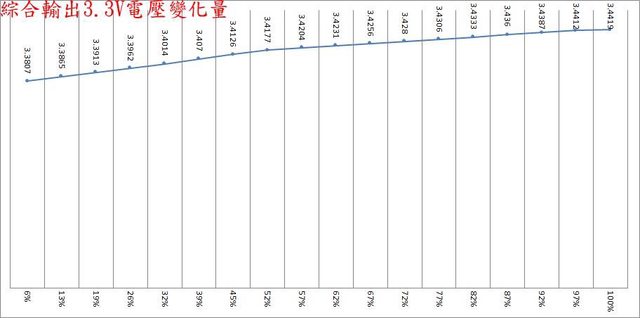 於綜合全負載輸出下12V/5V/3.3V各路低頻漣波分別為21.2mV/29.2mV/23.2mV;於純12V全