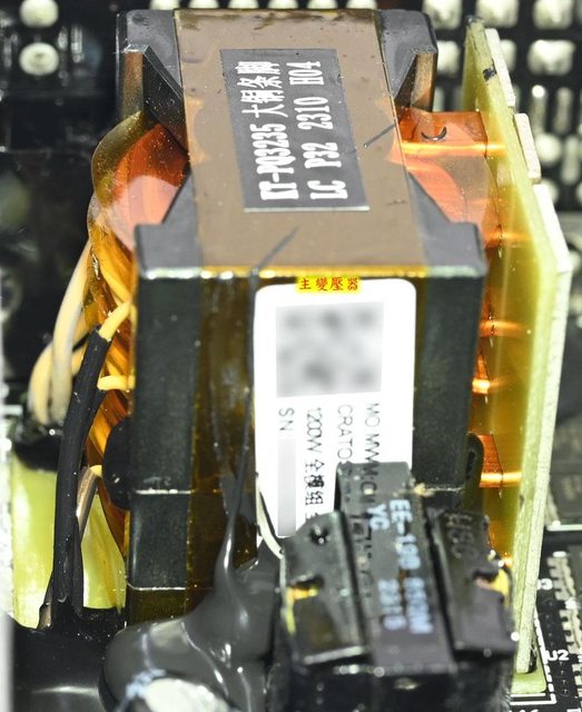 ○主電路板背面沒有任何元件,焊點做工良好,於二次側區域加裝金屬板,隔板於主電路