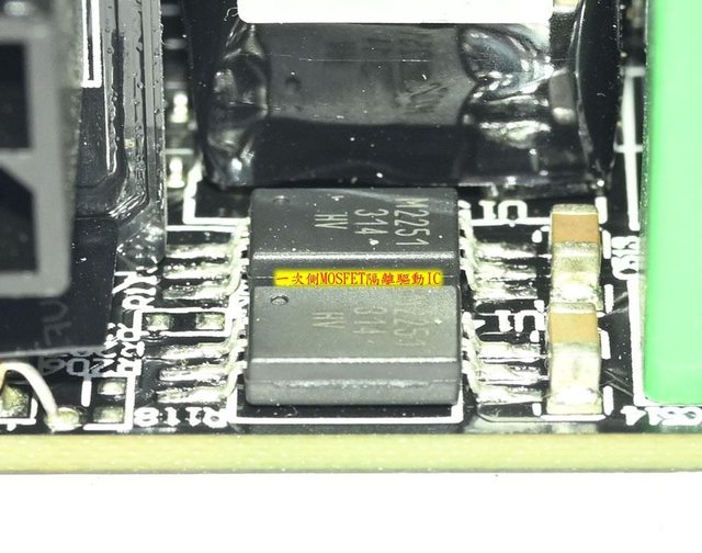 ▼主電路板背面沒有任何元件,焊點做工良好,於二次側區域加裝金屬板