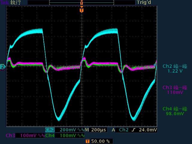 負載輸出下12V/5V/3.3V各路低頻漣波分別為20mV/25.2mV/17.6mV