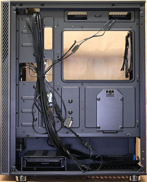 ▼線組撥開以後可清楚看到右側配置,底板背面右下方的2.5吋固定板使用螺絲固定