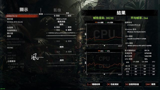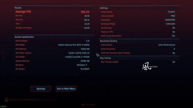 4K開啟DLSS Frame Generation與DLSS Ultra Performance => Average FPS 156.22,幀