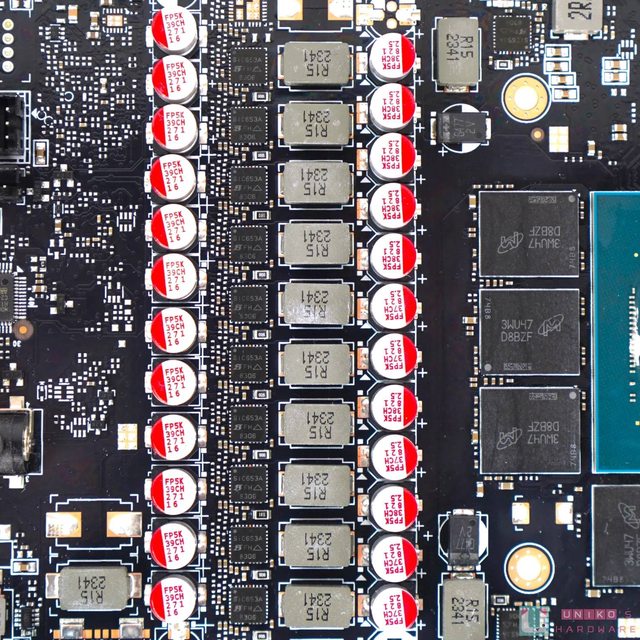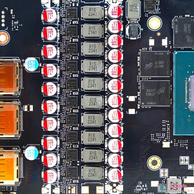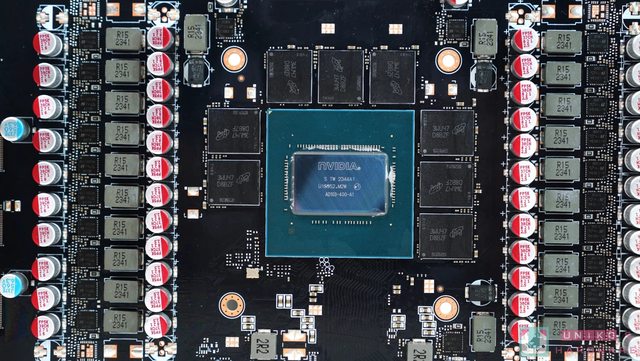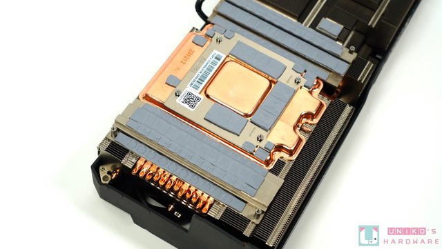 ‧大塊的均熱板覆蓋記憶體和核心晶體,另使用了多達 12 根熱導管把均熱板的熱力迅速帶