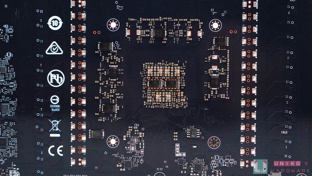 ‧顯示卡的底部留有巨大的排熱空間,內部的線材接頭也集中在此,這對於拆卡來說非常友