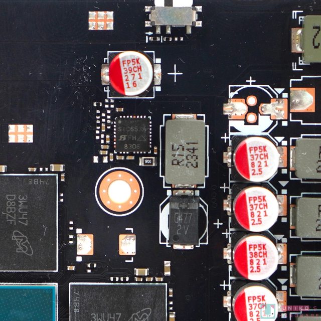 ‧供電模組、供電電感、輸入電容、輸出電容等等,甚至是 16-PIN 的輸入電感,技嘉都沒