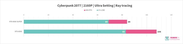 RTX 4080 SUPER 和 RTX 4090,8 組遊戲的 FPS 差異分別是: