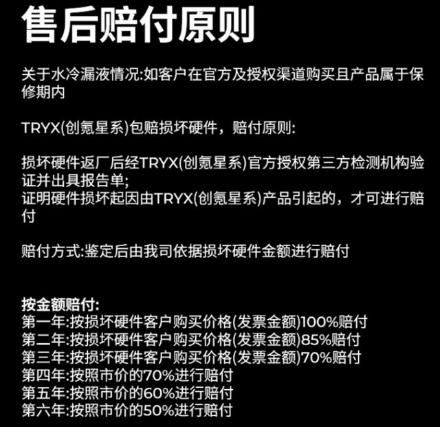 TRYX 為水冷本體提供 6 年質保。