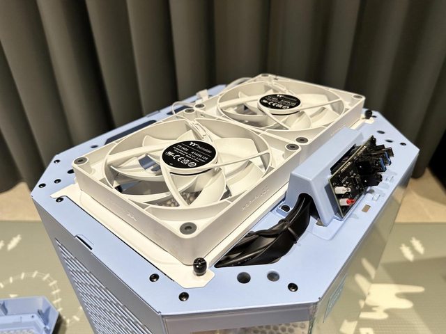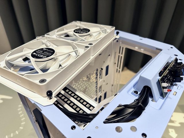 頂部預裝兩顆無光的CT140風扇,預設向上排風,使用獨立安裝支架。因為下方是主機板