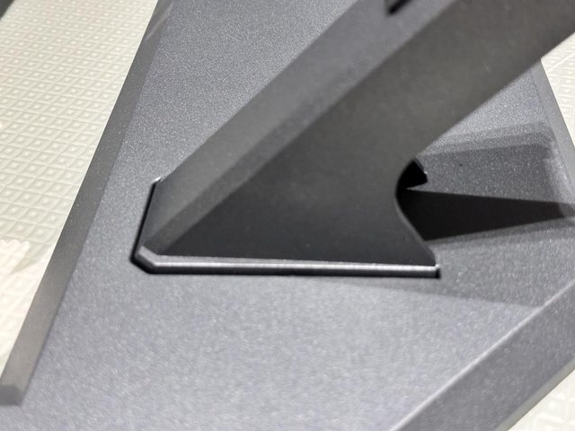 為斜角設計,另外還增加了橫躺展示支架,不再是個人當初戲稱的橫躺變微波爐啦!