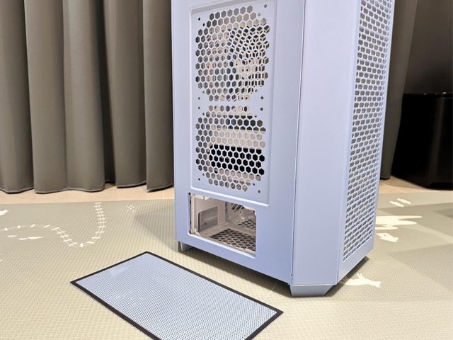 後方維持能裝兩個12/14cm風扇的設計,並搭配同色系的磁吸PVC濾網。
