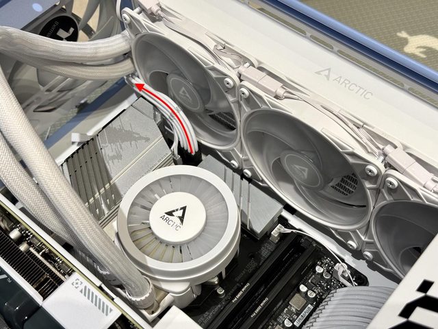 另一側拉出,如果參考本人的走線位置,就得注意冷排風扇會不會打到線材。