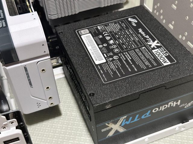 搭配13cm短機身的全漢Hydro PTM X ATX電源,如支架設為朝下出線,雖然電源本體空間
