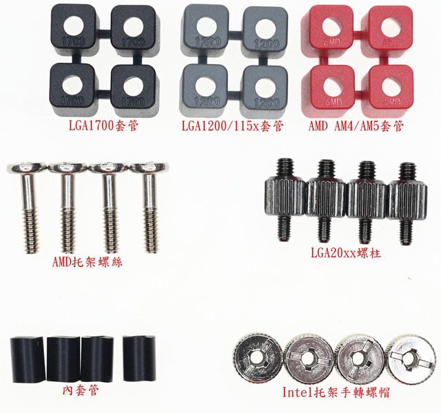 ▼配件紙盒內有Intel LGA1200/115x背板(C)、Intel LGA1700背板(D)、內含托架固定配
