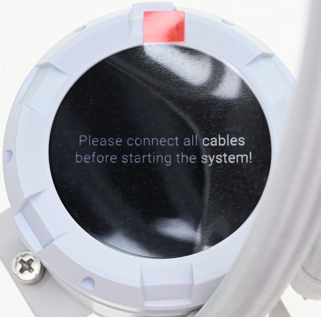 冷頭頂部2.1吋螢幕保護貼上面標註"啟動系統前請連接所有線材"