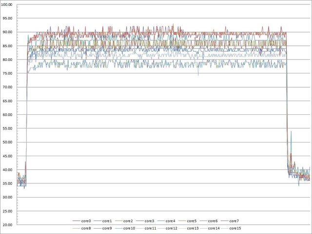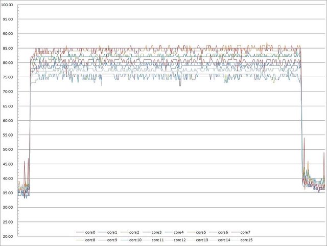 ▼功耗限制240W下高負載30分鐘CORE TEMP溫度記錄圖