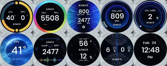 ▼10種預設主題在水冷頭螢幕的顯示效果