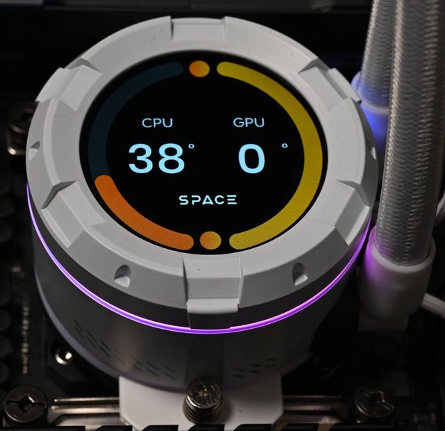 LCD螢幕,專用SPACE軟體可顯示即時CPU/GPU溫度、風扇轉速、頻率、使用率等監控資訊