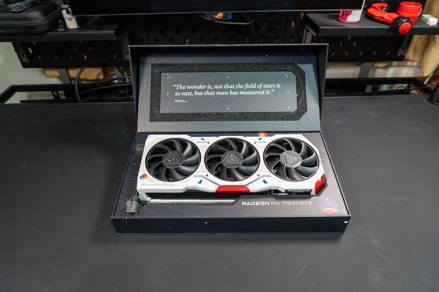 而7900XTX的部分就比較精緻,外盒包裝與卡本身都是特殊skin。