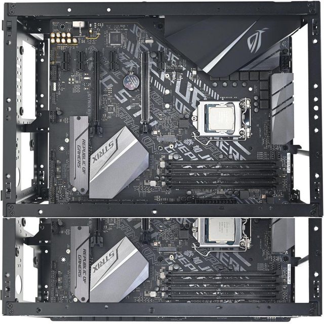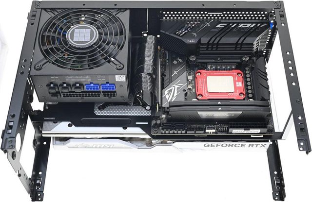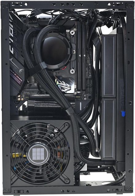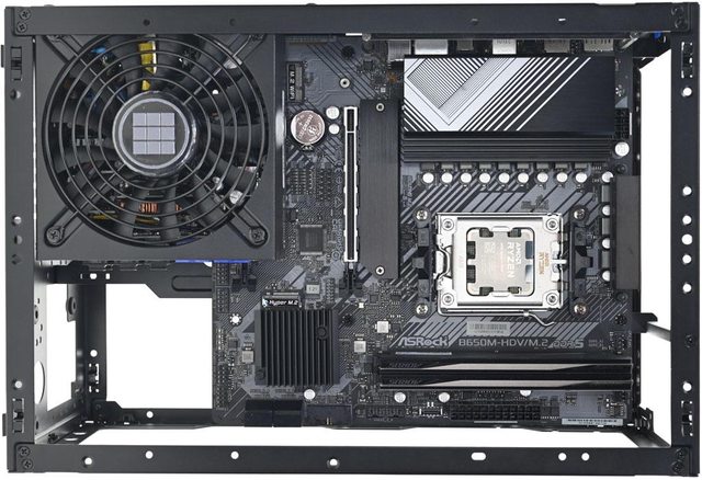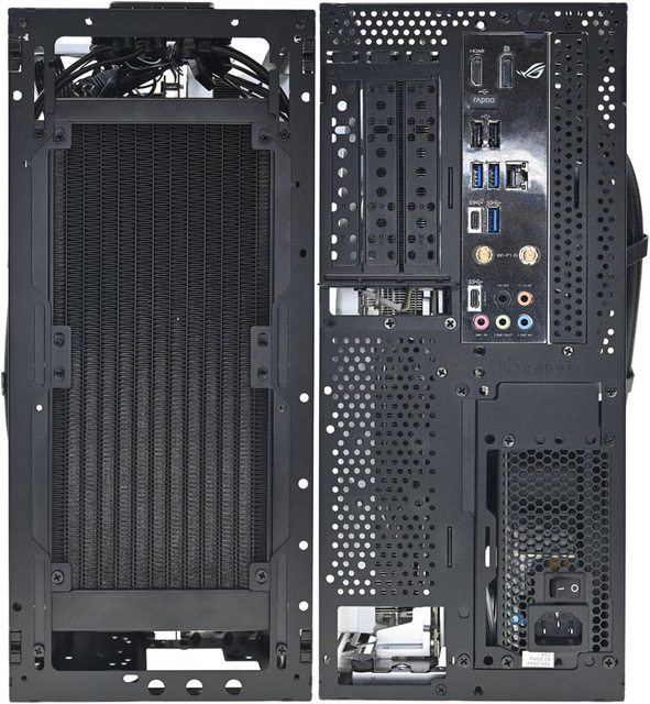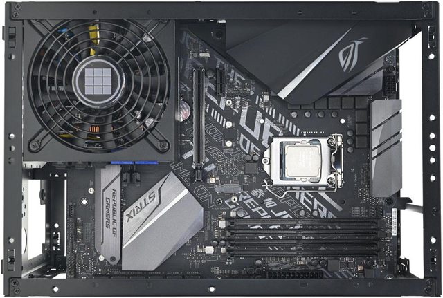 ▼3槽模式下機殼左側安裝ROG STRIX B660-I GAMING WIFI主機板及MICRONICS SFX-L