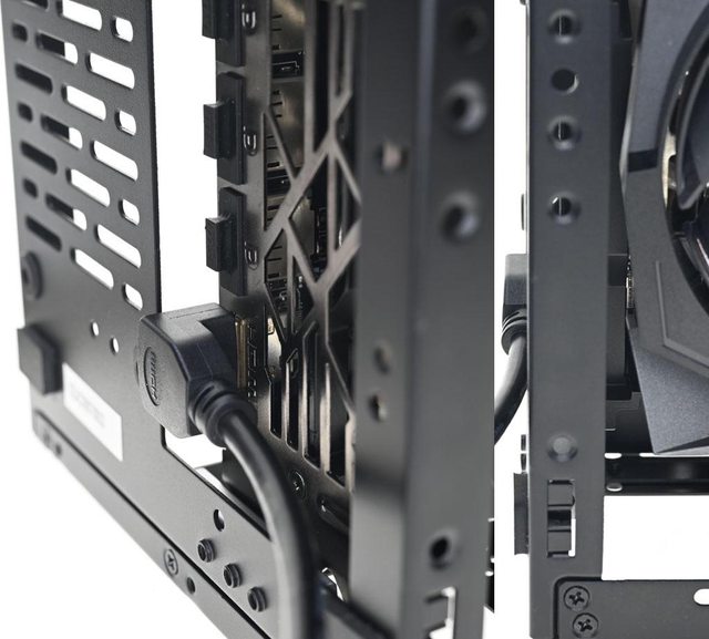 ▼使用直式接頭HDMI/DP線時,要在機殼底部增加腳座墊高,提供線路彎曲空間