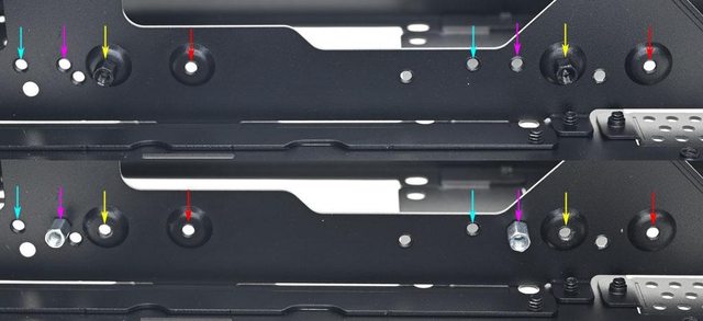 方垂直安裝位置,均使用6.5mm銀色銅柱。另一支延長線支架/底部托架安裝於機殼底部(