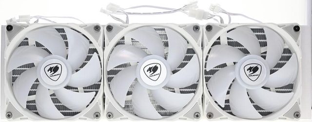 ●全鋁合金材質360mm水冷散熱排採用COUGAR "UTTERIGHT"鰭片設計,增大波浪鰭片兩端