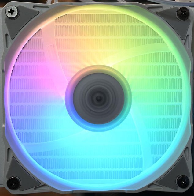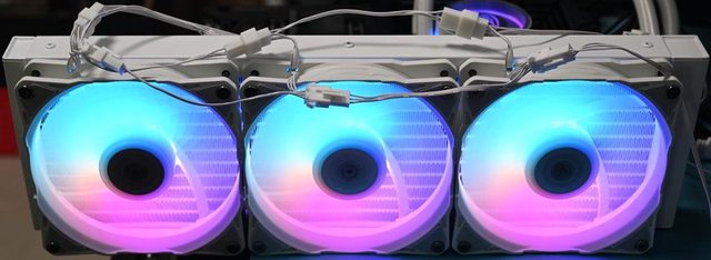 ●3個EL120-W ARGB風扇,最高轉速2200轉,帶動更多氣流穿過水冷排鰭片,有效降低冷