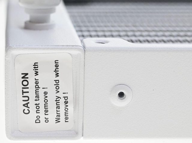 ▼水冷排加水口貼上易碎標籤,若破損或移除會使保固失效