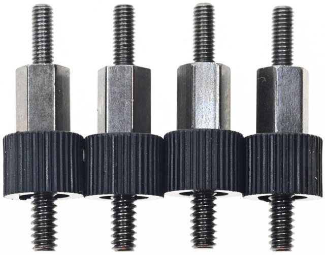 ▼AMD螺柱其中一端有黑色直條紋圓筒,安裝時直條紋圓筒那一端朝向主機板