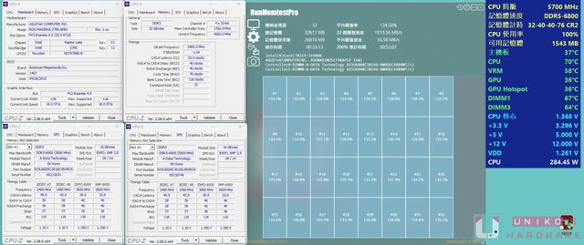 顆粒,JEDEC 預設頻率為 4800 40-39-39-76 1.1V,開啟 XMP 後的規格為 6000 30-40-40-