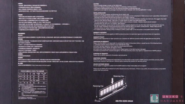 記憶體包裝內除了泡殼跟本體,就沒有額外附件,就連說明書都直接印在包裝內側,拆開包